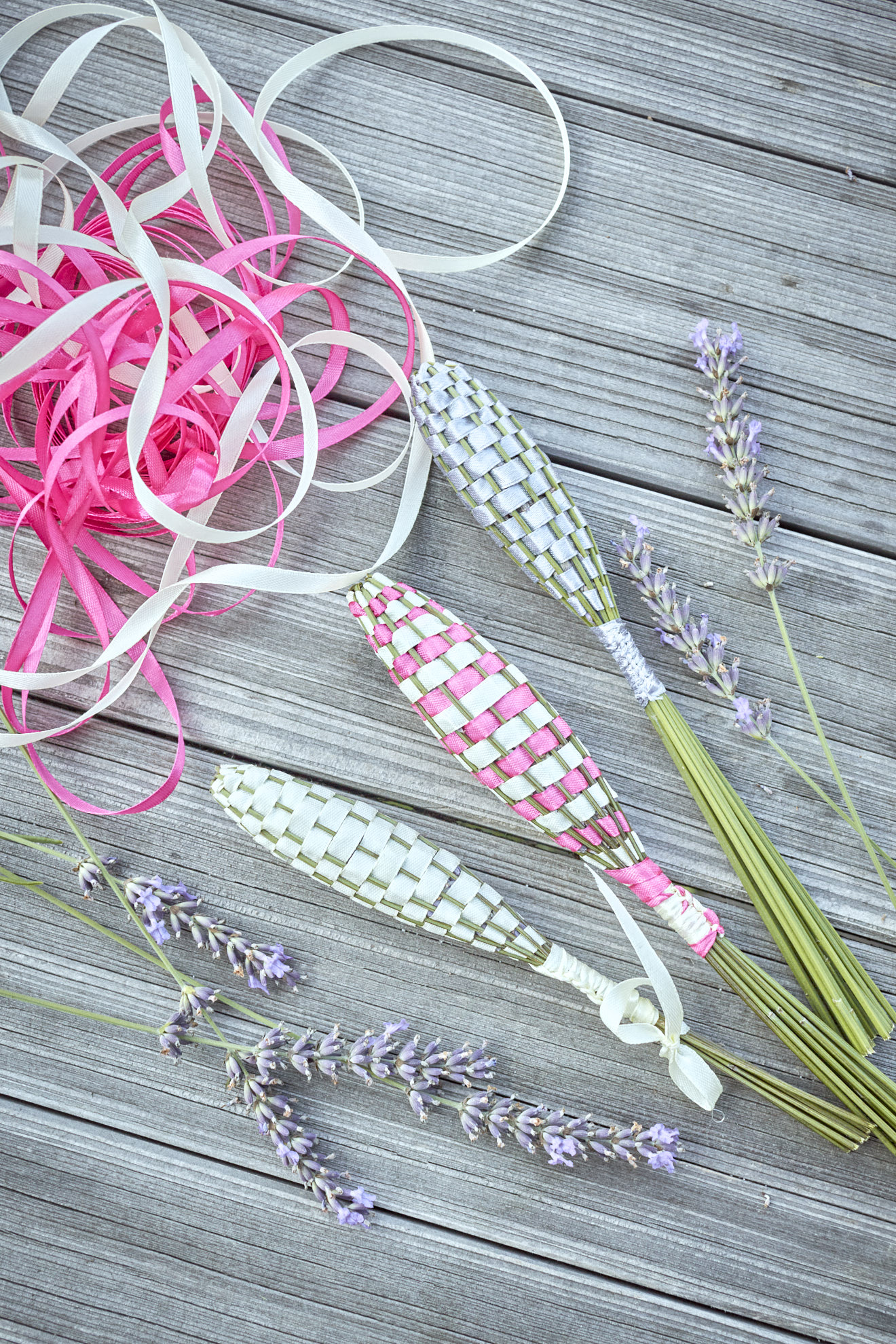 Je mehr Stängel man benutzt, desto länger dauert das Flechten, desto mehr Satinband braucht man, desto dicker wird aber auch die „Keule“.